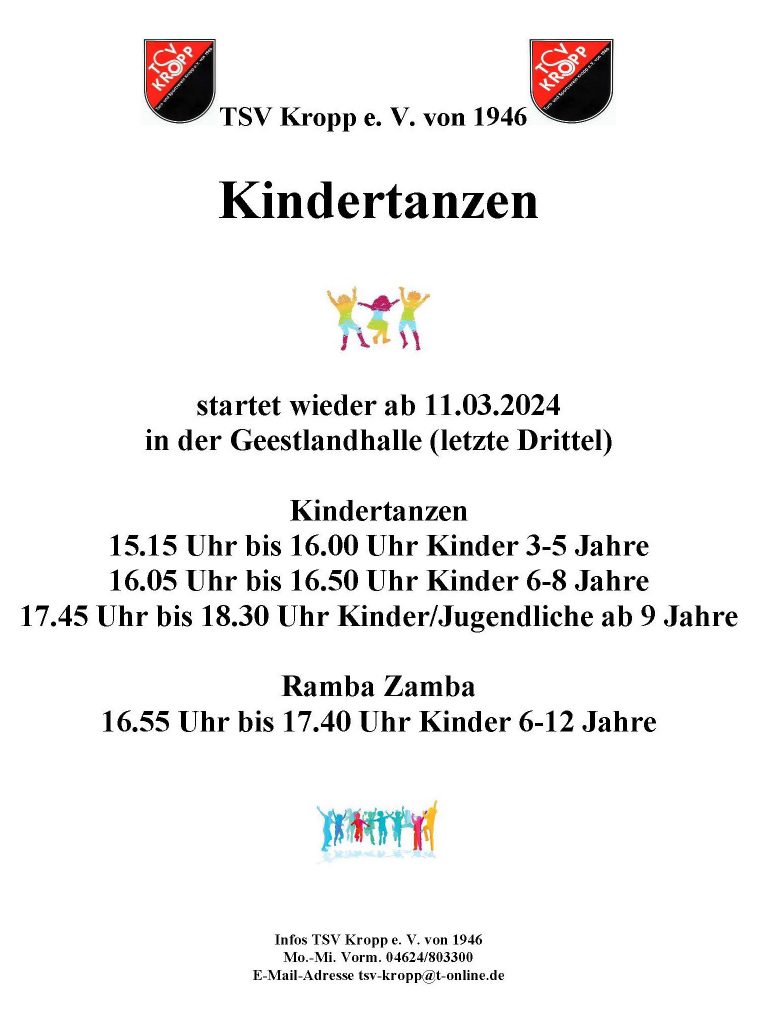 beim Turn- und Sportverein Kropp e.V. von 1946!